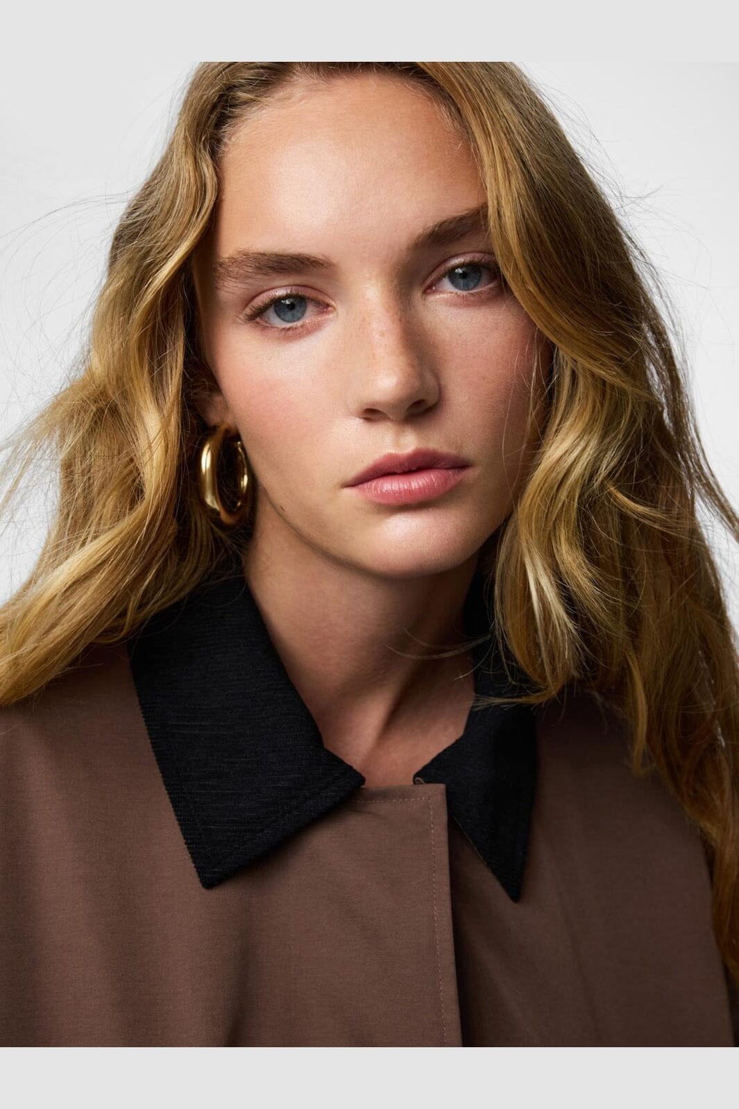 Króka kurtka od Pieces, wykonana z poliestru o jedwabistej powierzchni. Kurtka jest brązowa z czarnym kołnierzem i czarnymi mankietami.