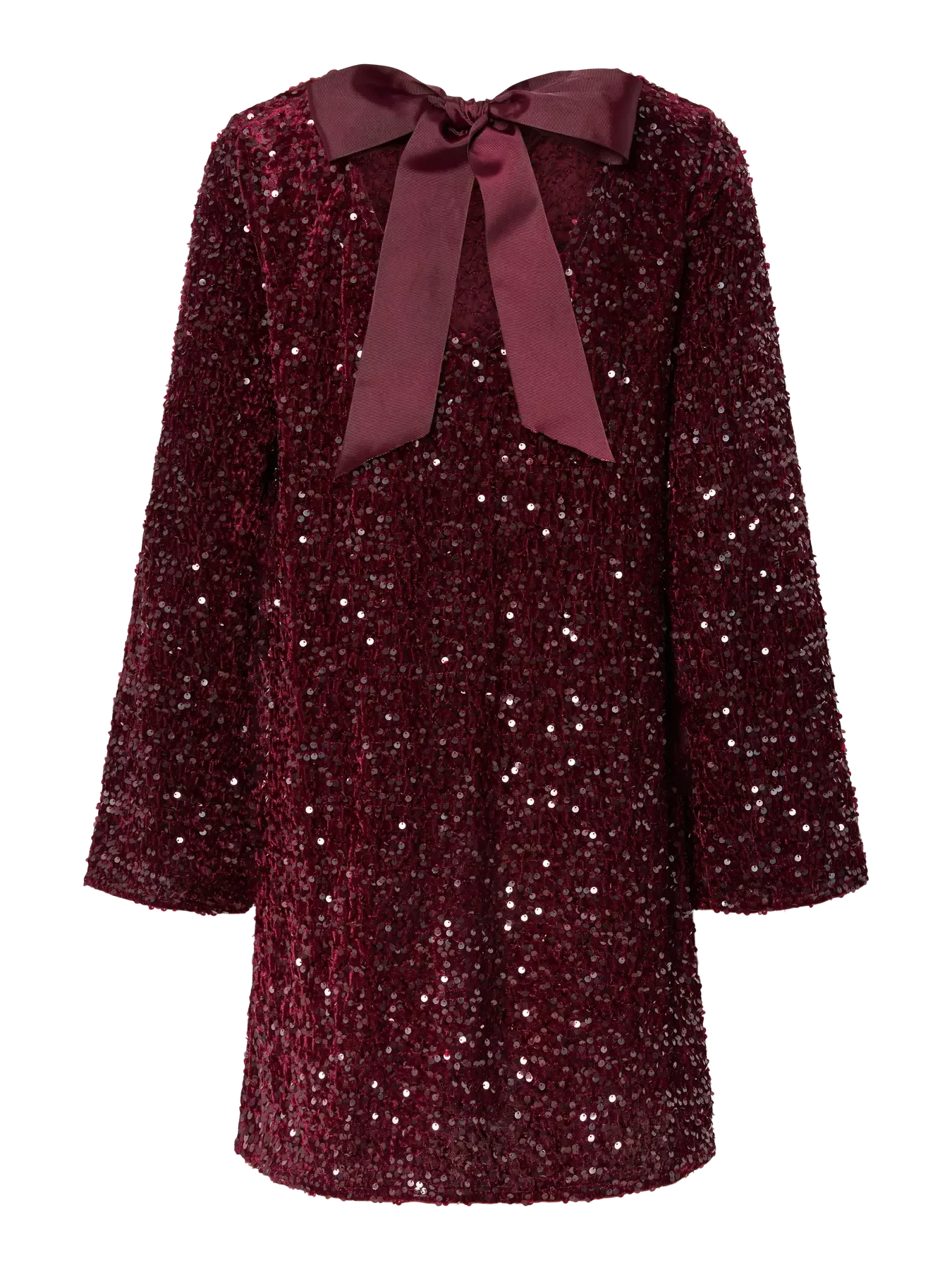 Pieces Pckam Ls Deep Back Bow Dress Kolor: 4859164 Tawny Port Tawney Port Sequins