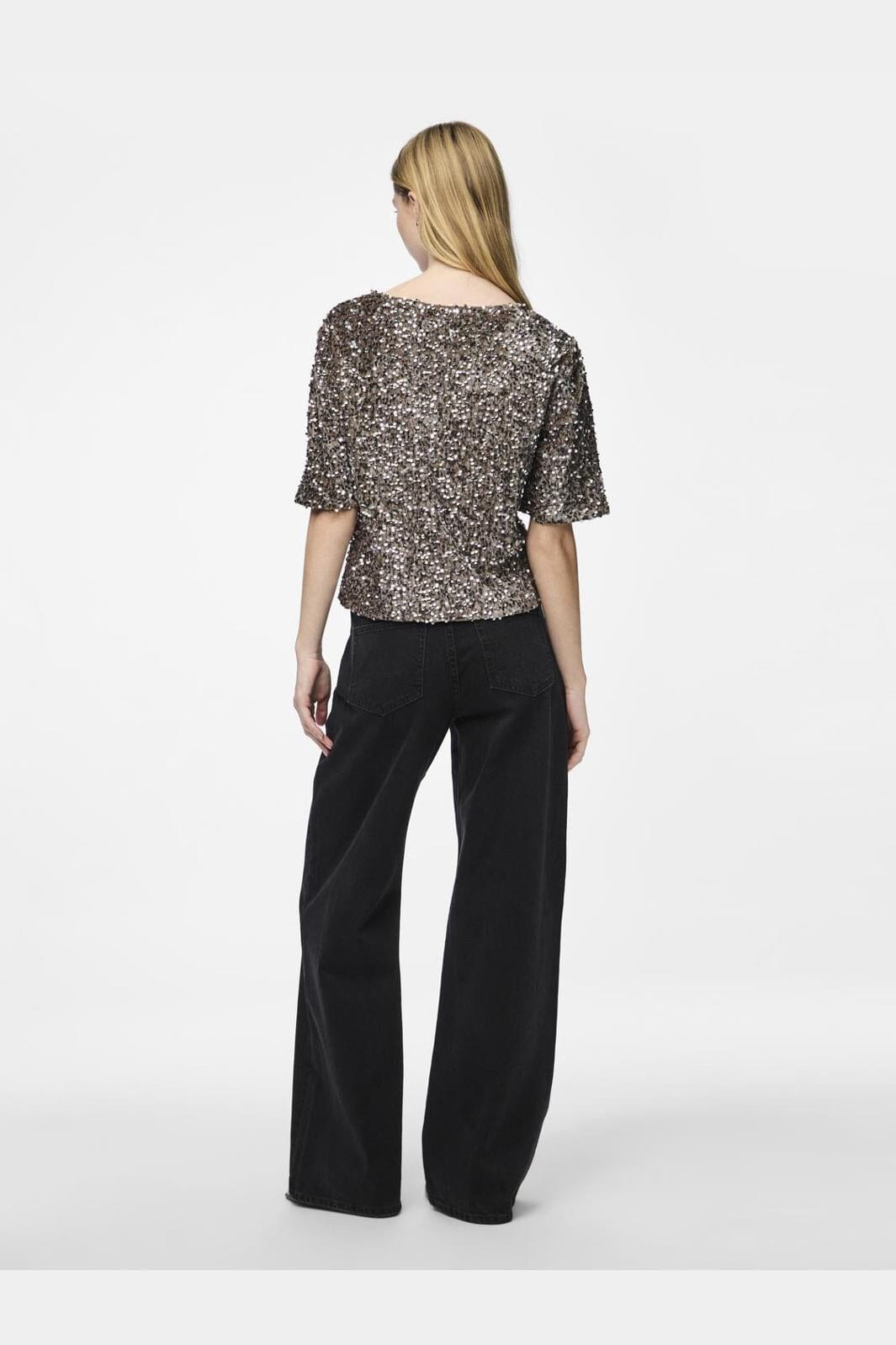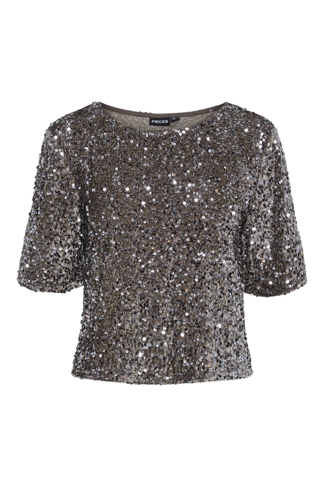 Pieces Pckam Ss Top Kolor: 4641548 Morel Silver Sequins