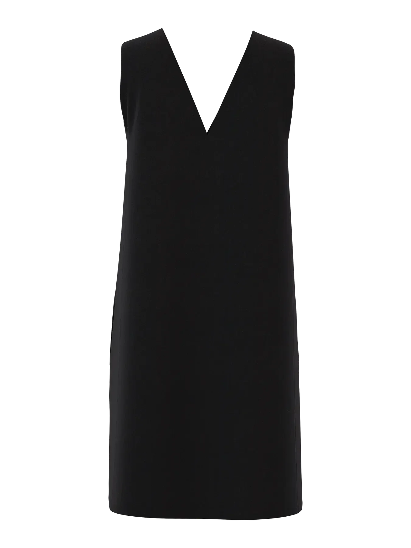Czarna sukienka spencer od Pieces z dekoltem V z przodu i z tyłu. Sukienka bez rękawów ma luźny krój i sięga do kolan.