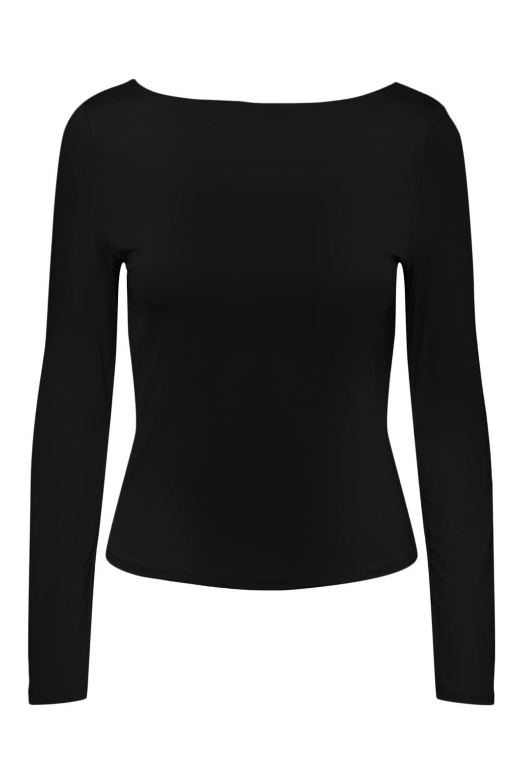 Czarny top z długim rękawem od Pieces z kwadratowym dekoltem i głębokim wycięciem na plecach. Top ma regular fit i jest wykonany z elastycznego materiału, który zapewnia dobrą swobodę ruchów.