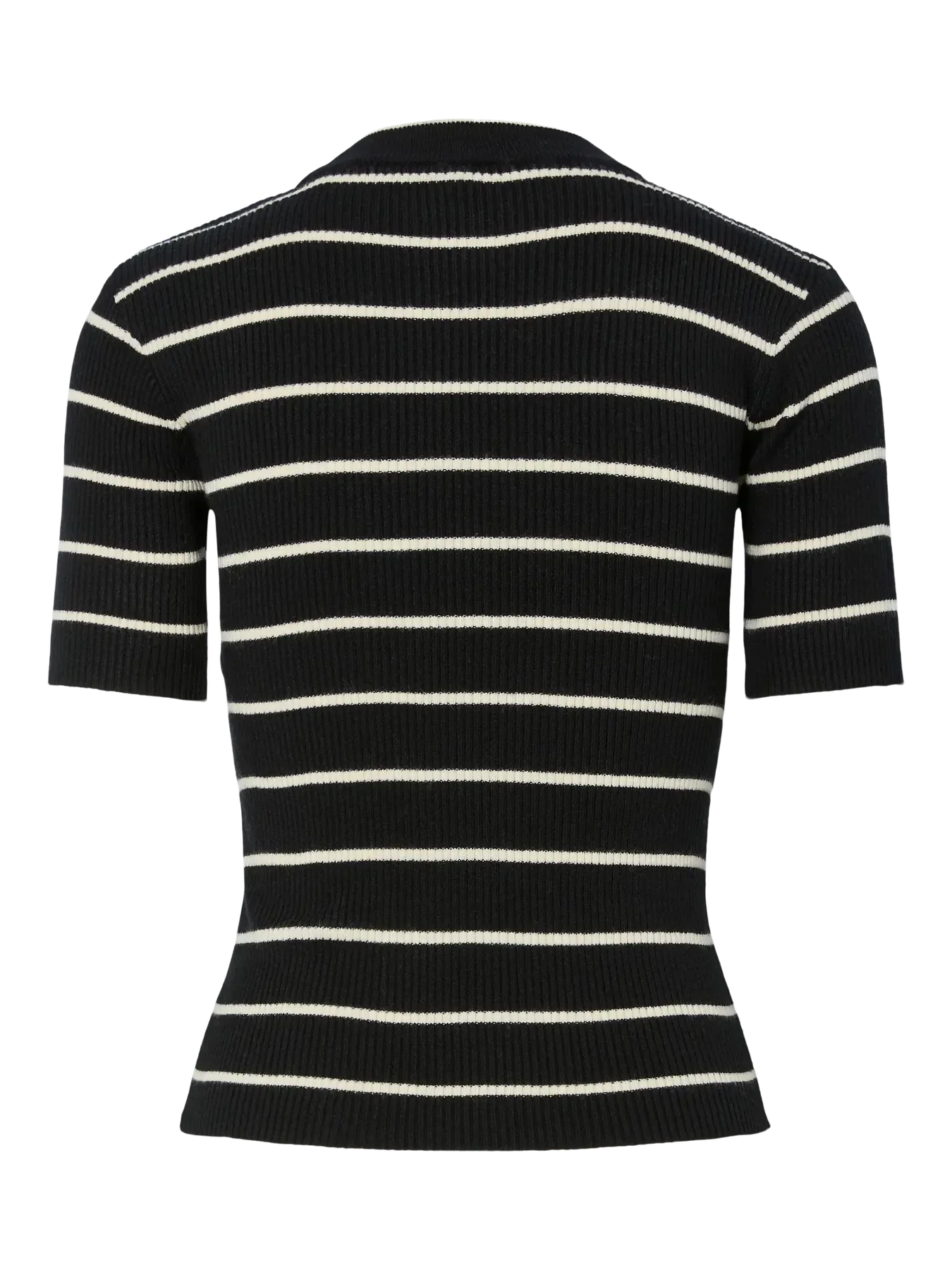 Dzianinowy top marki Pieces z czarnymi i jasnymi paskami. Top ma krótkie rękawy i okrągły dekolt.