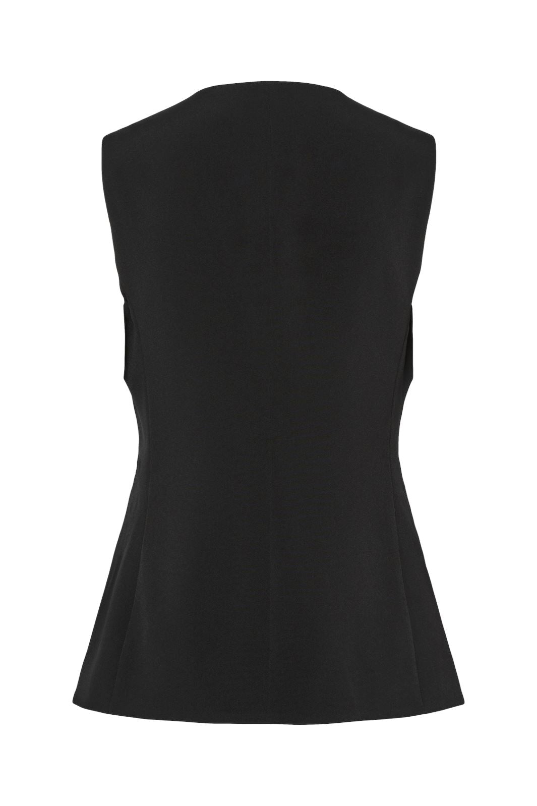 Czarna długa kamizelka od Pieces z zapięciem na guziki z przodu. Kamizelka ma regular fit i praktyczne przednie kieszenie. Nadaje się zarówno na co dzień, jak i na formalne okazje.