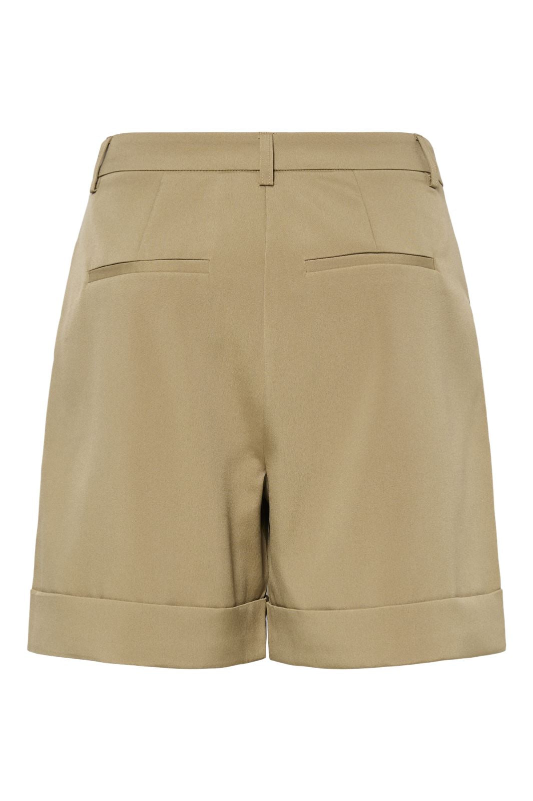Khaki szorty od Pieces z tkaniny tkanej. Szorty mają krótką długość z podwiniętym brzegiem i praktycznymi detalami, takimi jak szlufki na pasek i cztery kieszenie.