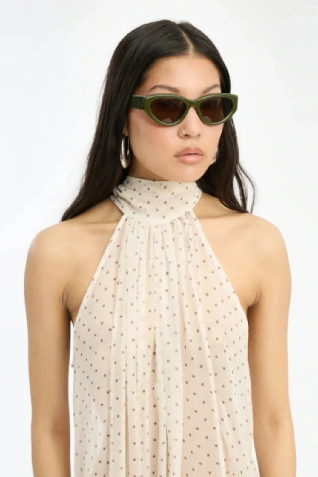 Okulary przeciwsłoneczne Rotate z oprawką typu cat-eye w zielonym kolorze. Współpraca z marką Chimi nadaje okularom retro wygląd z ciemnymi szkłami.