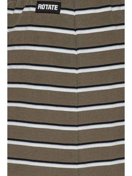 Spódnica z dżerseju marki Rotate w pasiastym, khaki-zielonym odcieniu. Spódnica ma wysoki stan i dopasowany krój slim fit.