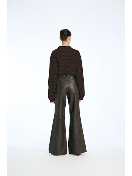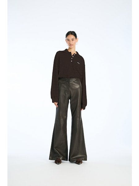 Długi rękaw polo z piké od Rotate z pasiastym wzorem w brązowych i beżowych odcieniach. Koszulka polo ma haft na piersi i oversize’owy krój.