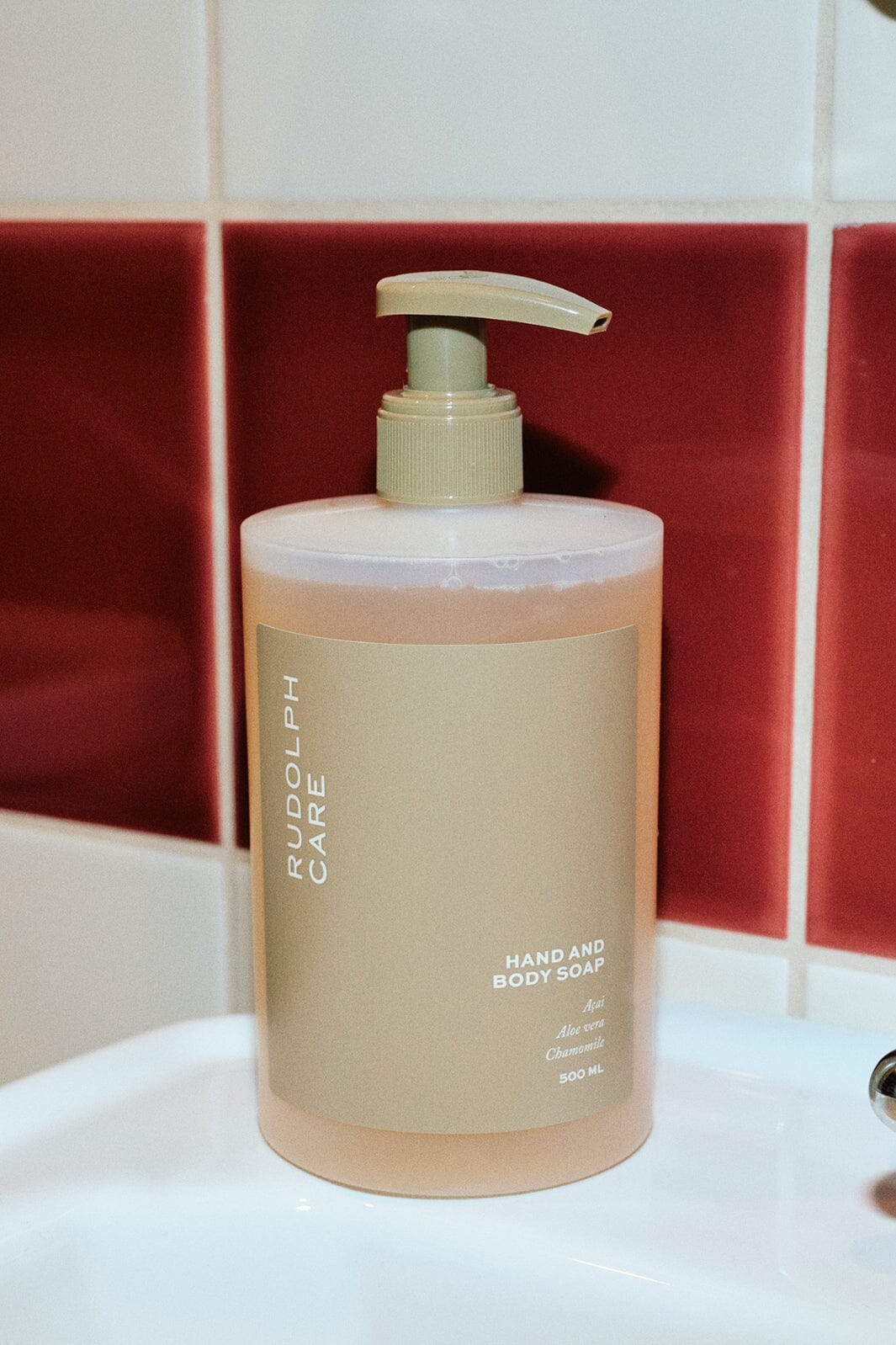 Mydło do rąk i ciała od Rudolph Care z naturalnymi składnikami. Mydło jest dostępne w butelce z pompką o pojemności 500 ml i ma zapach zielonych i ciepłych nut.
