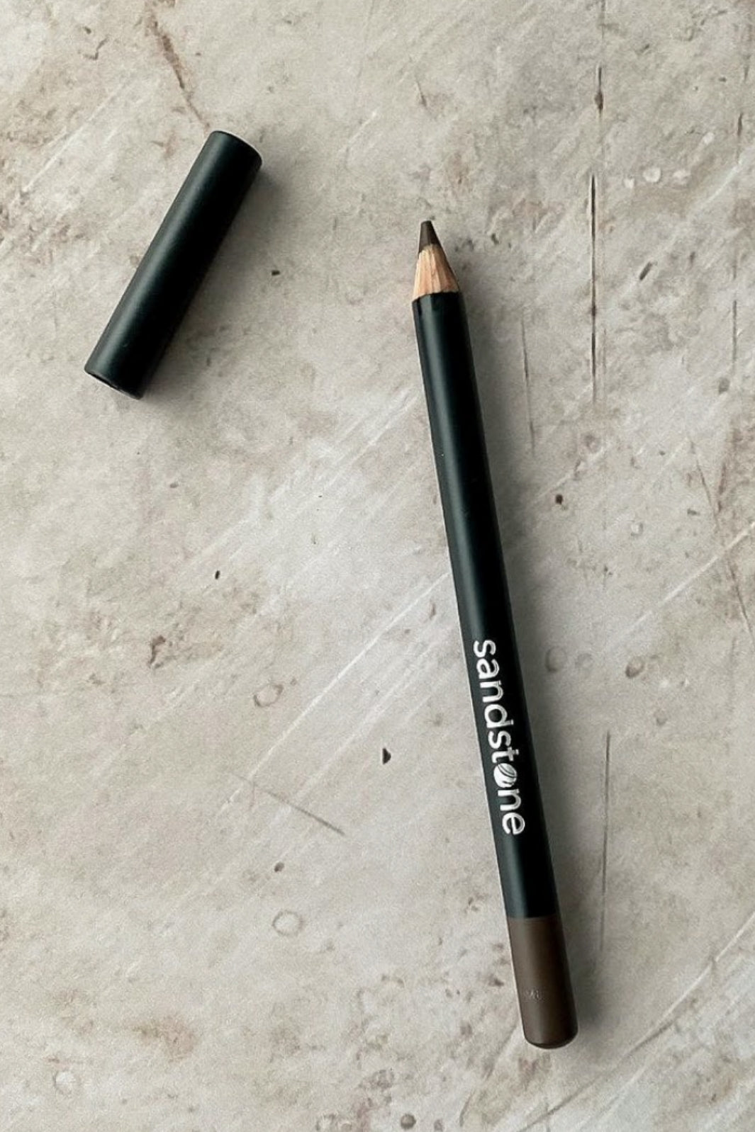 Brązowy eyeliner od Sandstone o kremowej konsystencji. Produkt jest wegański i wolny od perfum oraz olejków eterycznych, co sprawia, że jest delikatny dla wrażliwych oczu.
