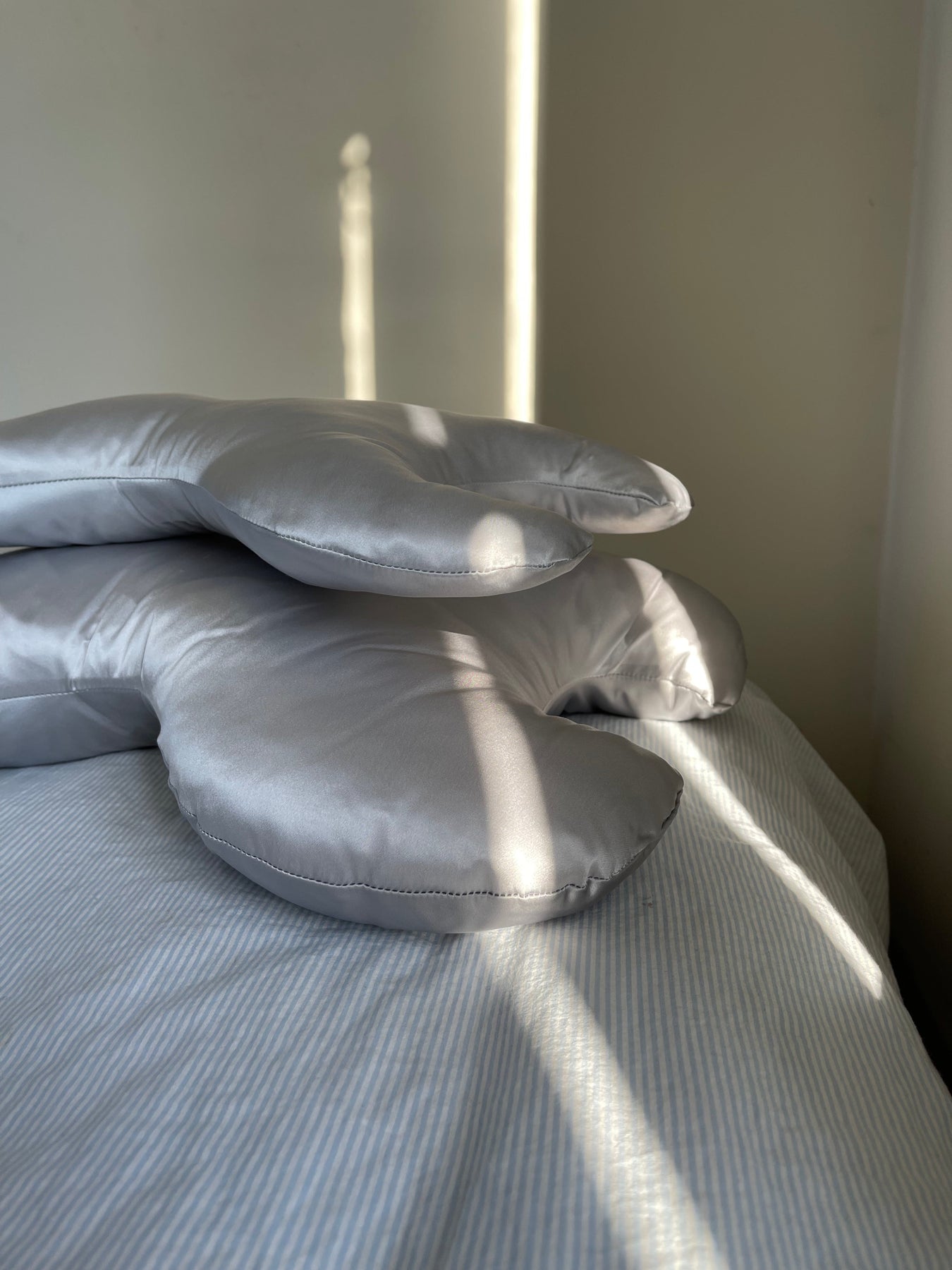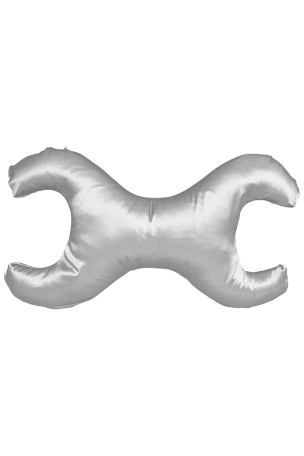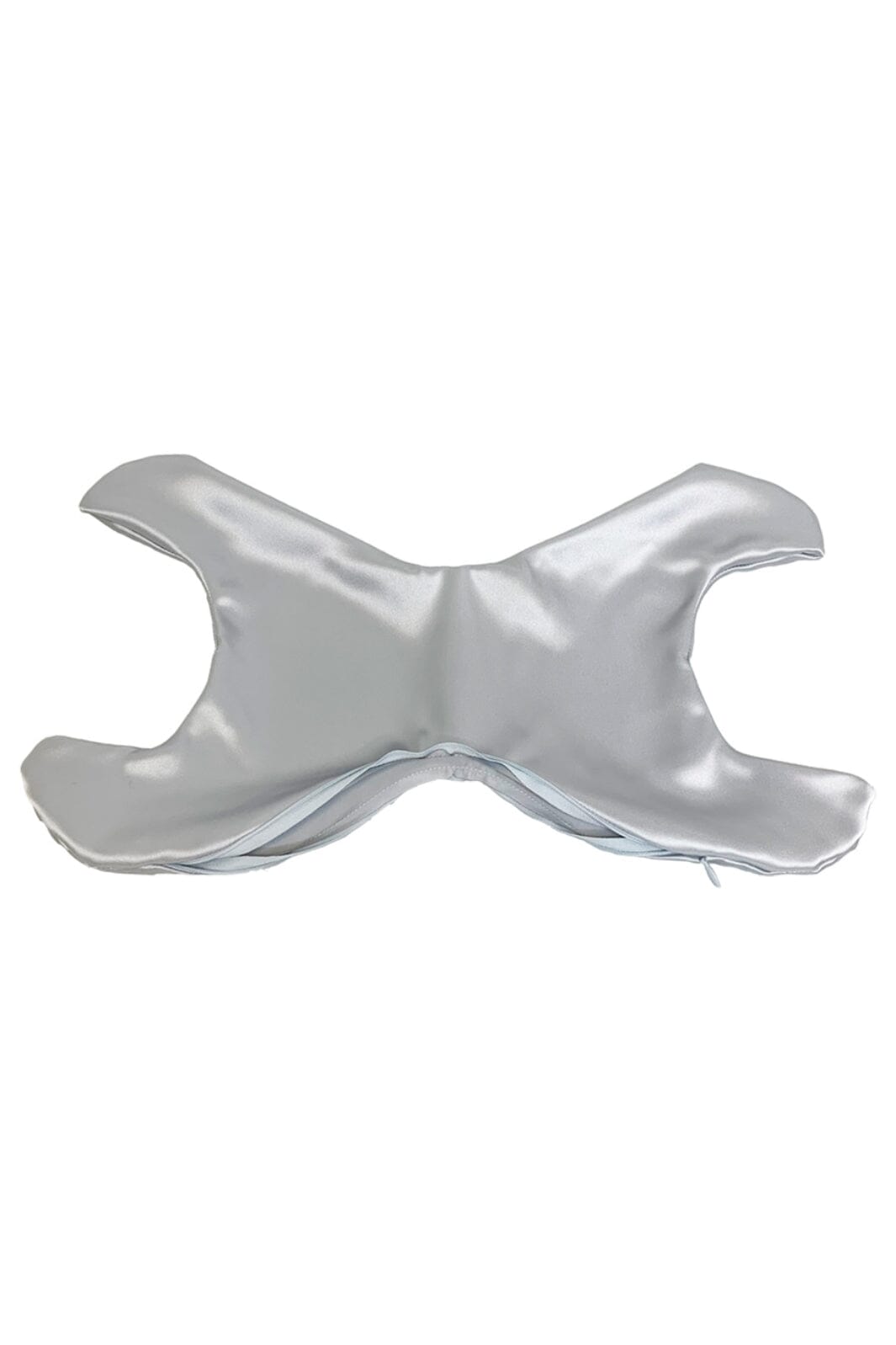 Poszewka od Save My Face w srebrnym charmeuse-silk. Poszewka ma gładką powierzchnię i jest zaprojektowana dla poduszki La Petite z charakterystycznym kształtem X.