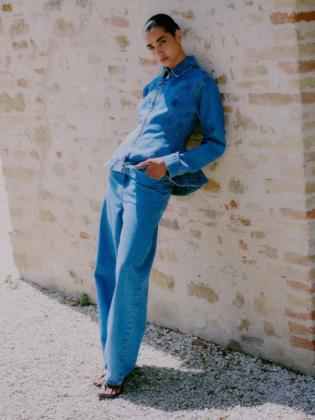 - Niebieski denim w średnim odcieniu