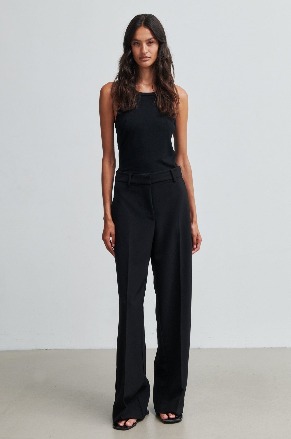 Czarny top na ramiączkach od Second Female o prążkowanej fakturze. Ma bezrękawowy krój i okrągły dekolt.