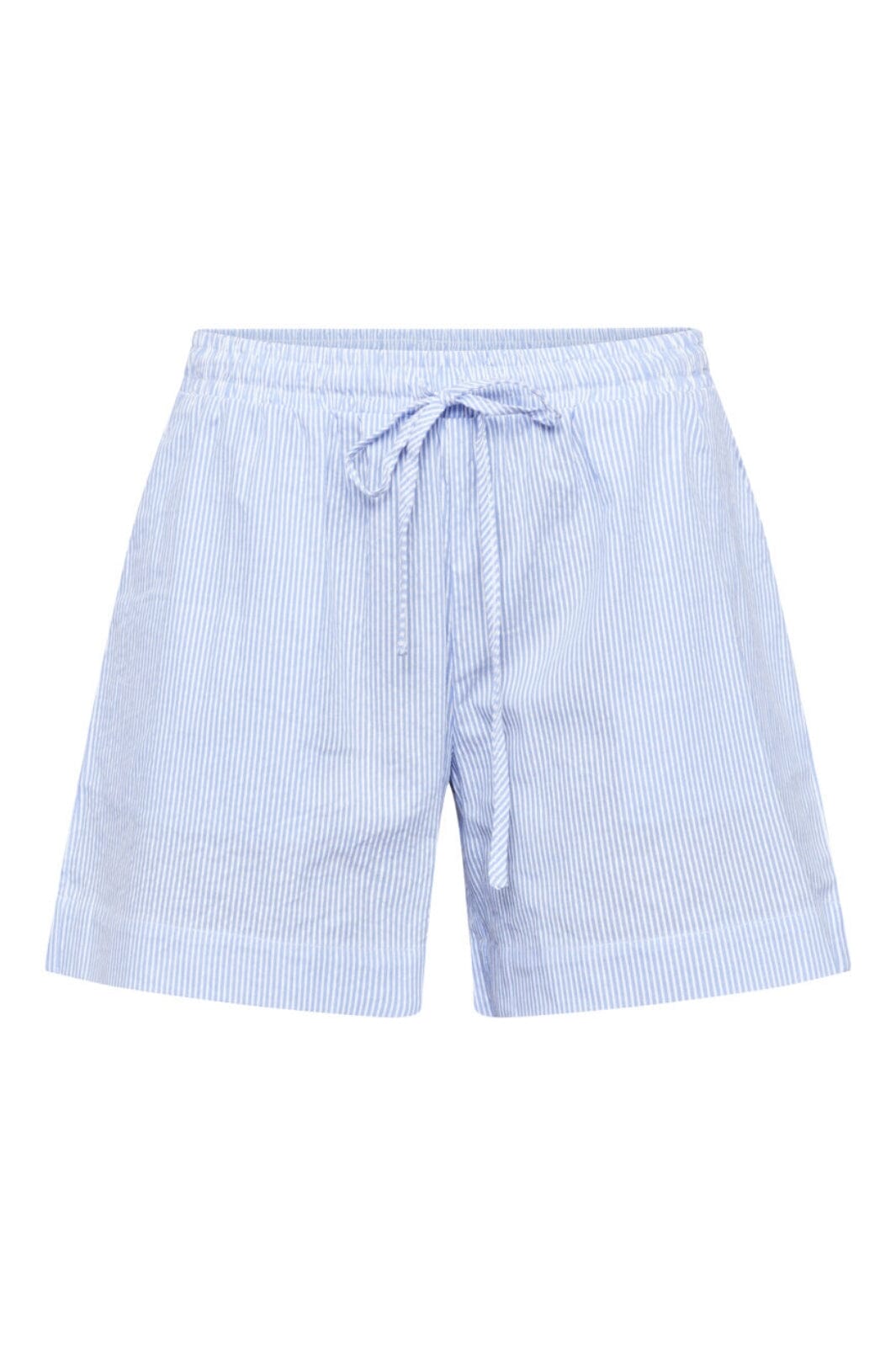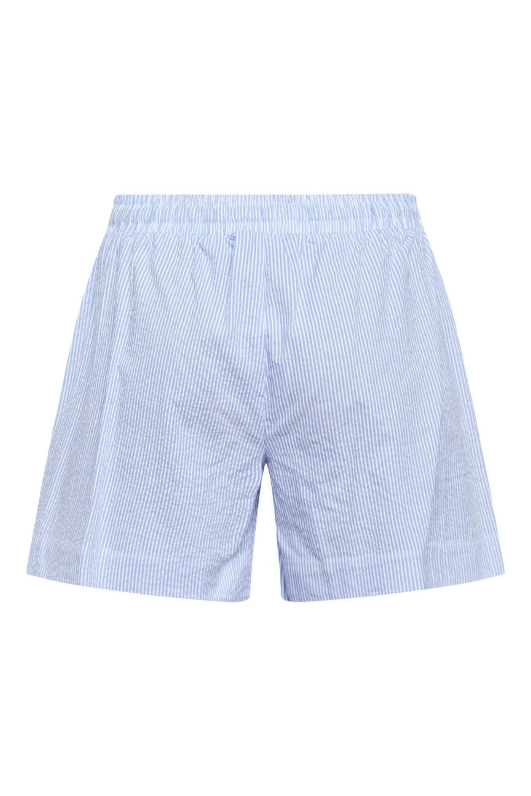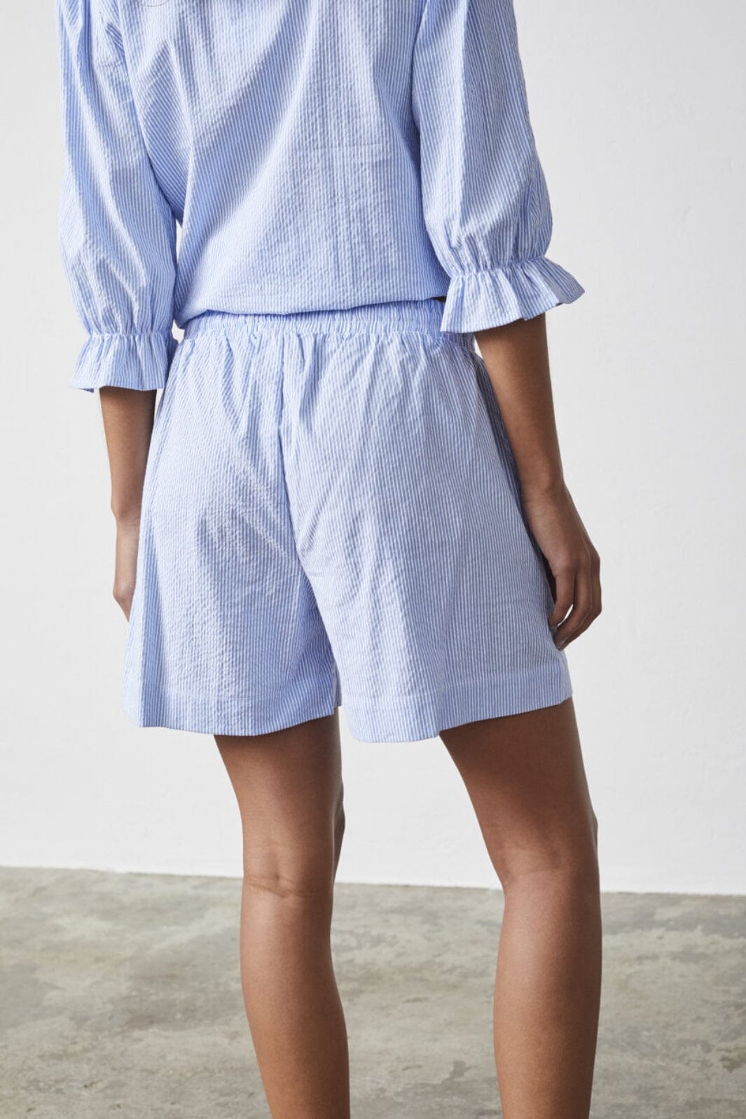 Wzorzyste szorty od Sisters Point w niebiesko-białym kolorze. Luźne szorty mają wysoki stan z gumką i sznurkiem, co pozwala na indywidualne dopasowanie.