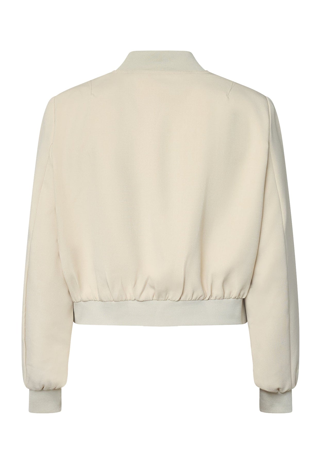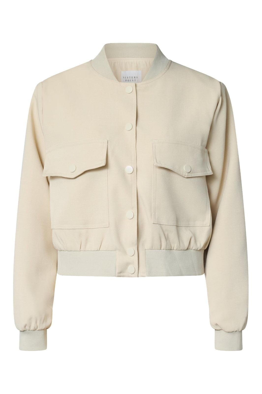 Krótka kurtka marki Sisters Point w jasnobeżowym kolorze. Kurtka ma okrągły dekolt z elastyczną lamówką oraz długie rękawy z szerokimi, prążkowanymi ściągaczami.
