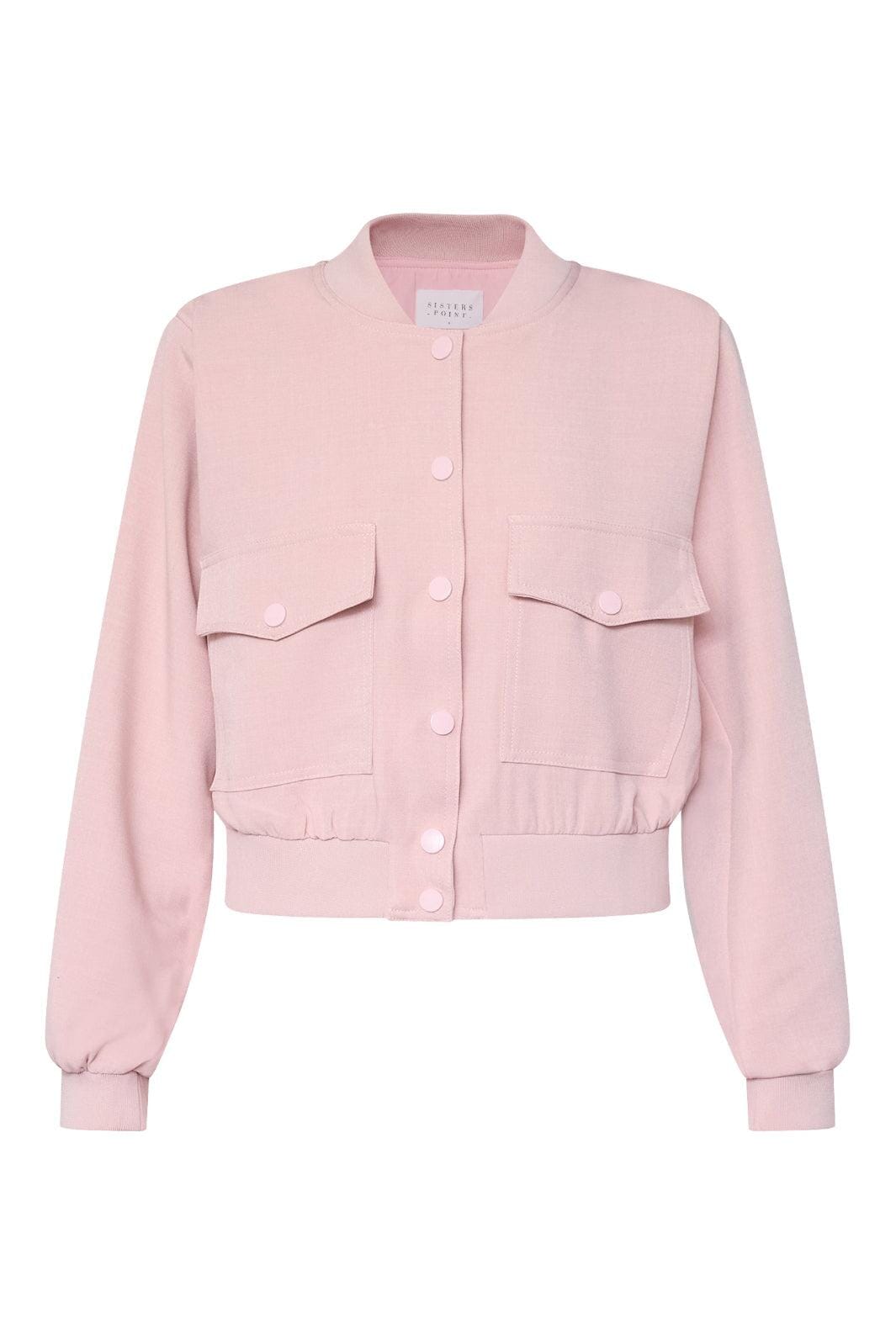 Krótka kurtka Sisters Point w różowym odcieniu. Kurtka jest jednokolorowa i sprawdzi się zarówno na co dzień, jak i na bardziej uroczyste okazje.