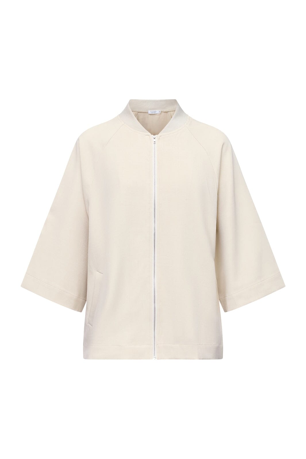 Kurtka od Sisters Point w jasnym szarawym odcieniu o nazwie Fog. Wykonana w 100% z poliestru, o oversize’owym kroju i z pełnym zamkiem.