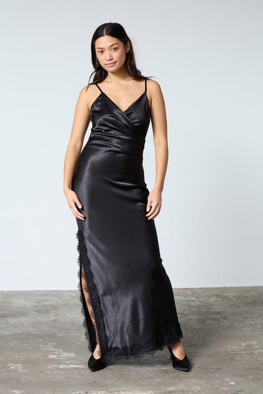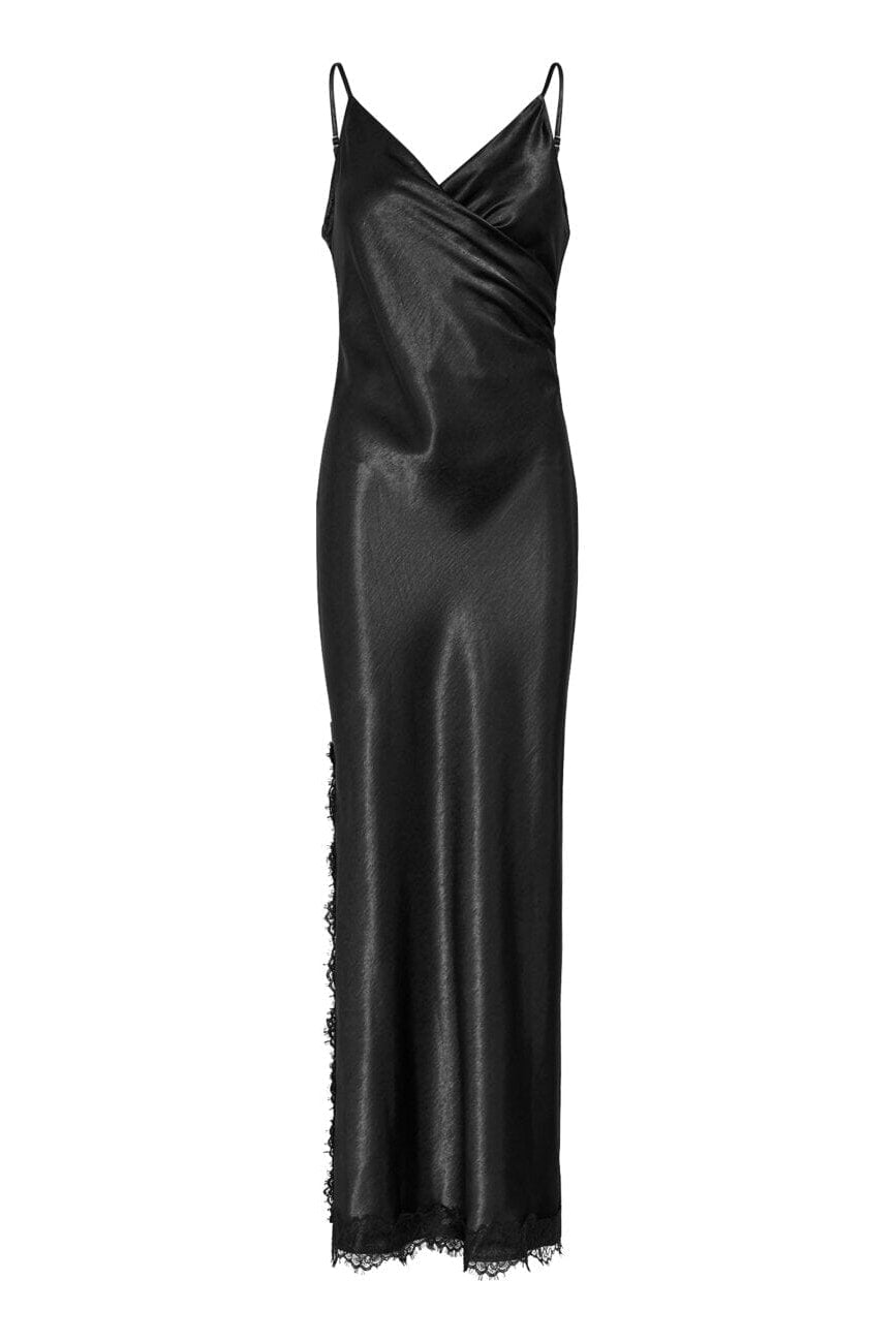 Czarna sukienka od Sisters Point na uroczystości i formalne okazje. Sukienka ma satynowy wygląd z koronką i wąski krój.