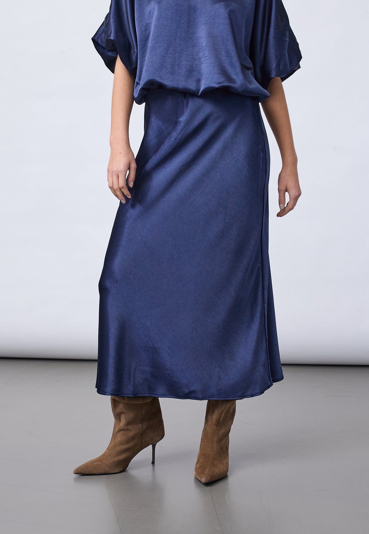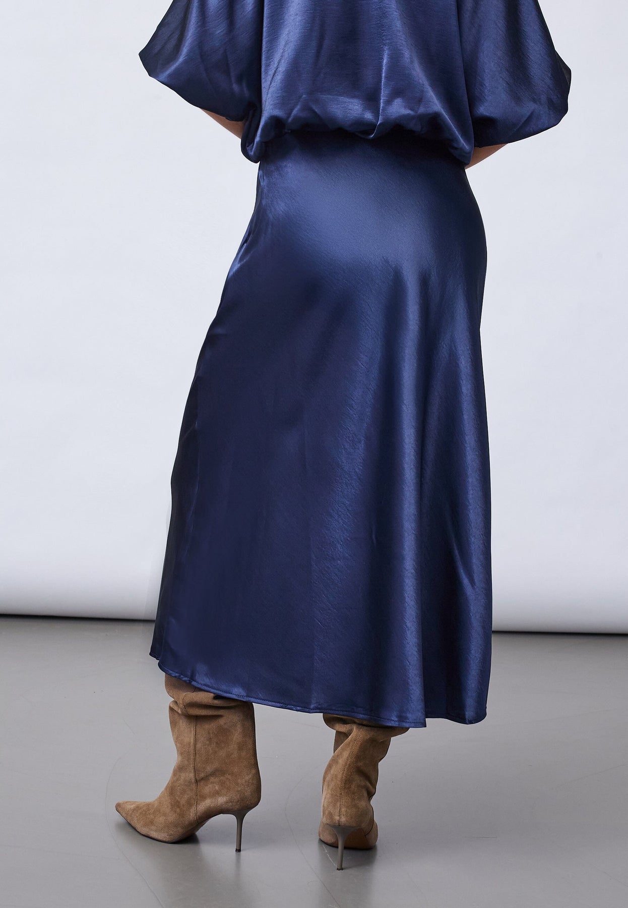 Spódnica od Sisters Point w ciemnoniebieskim kolorze, wykonana w 100% z poliestru. Spódnica ma długość do połowy łydki i fason w kształcie litery A.