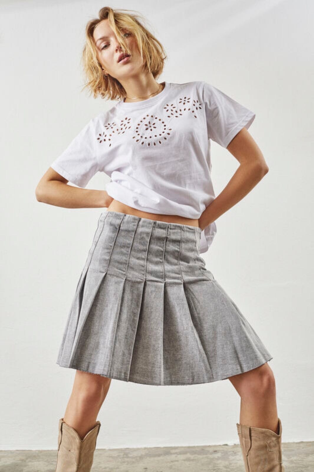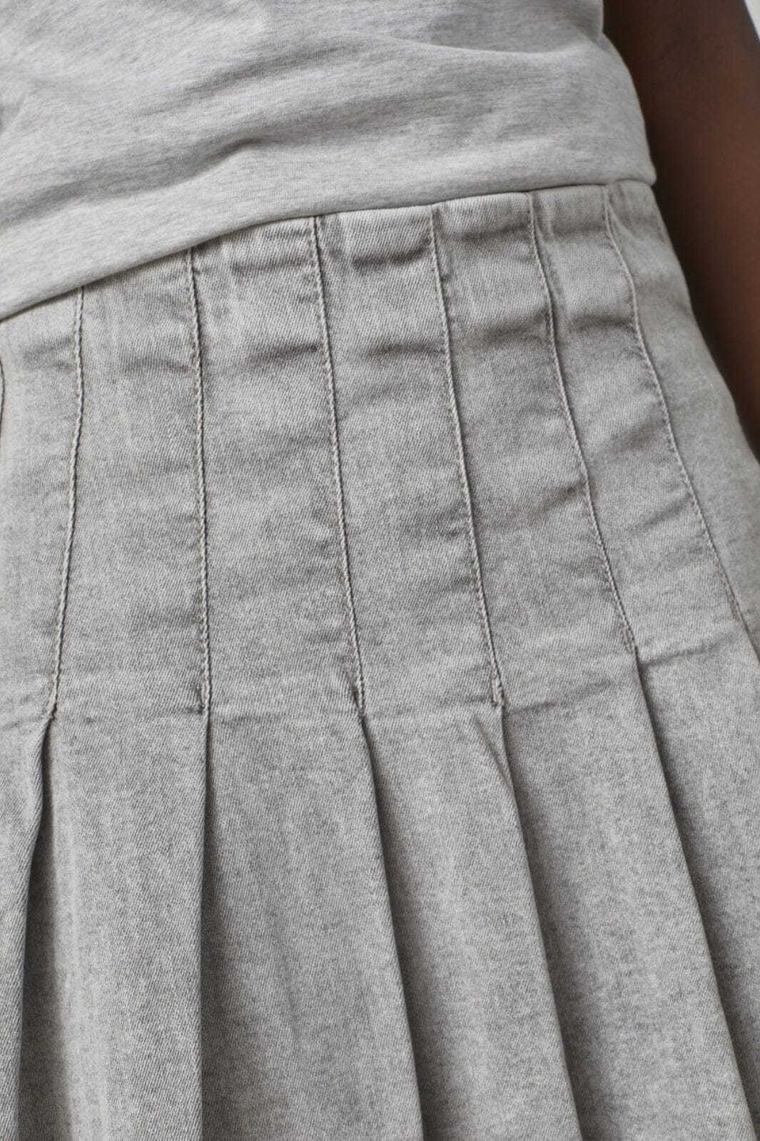Szara spódnica od Sisters Point z plisowanym wzorem. Ma regularny stan i sięga do połowy uda. Zamek błyskawiczny z boku ułatwia zakładanie.