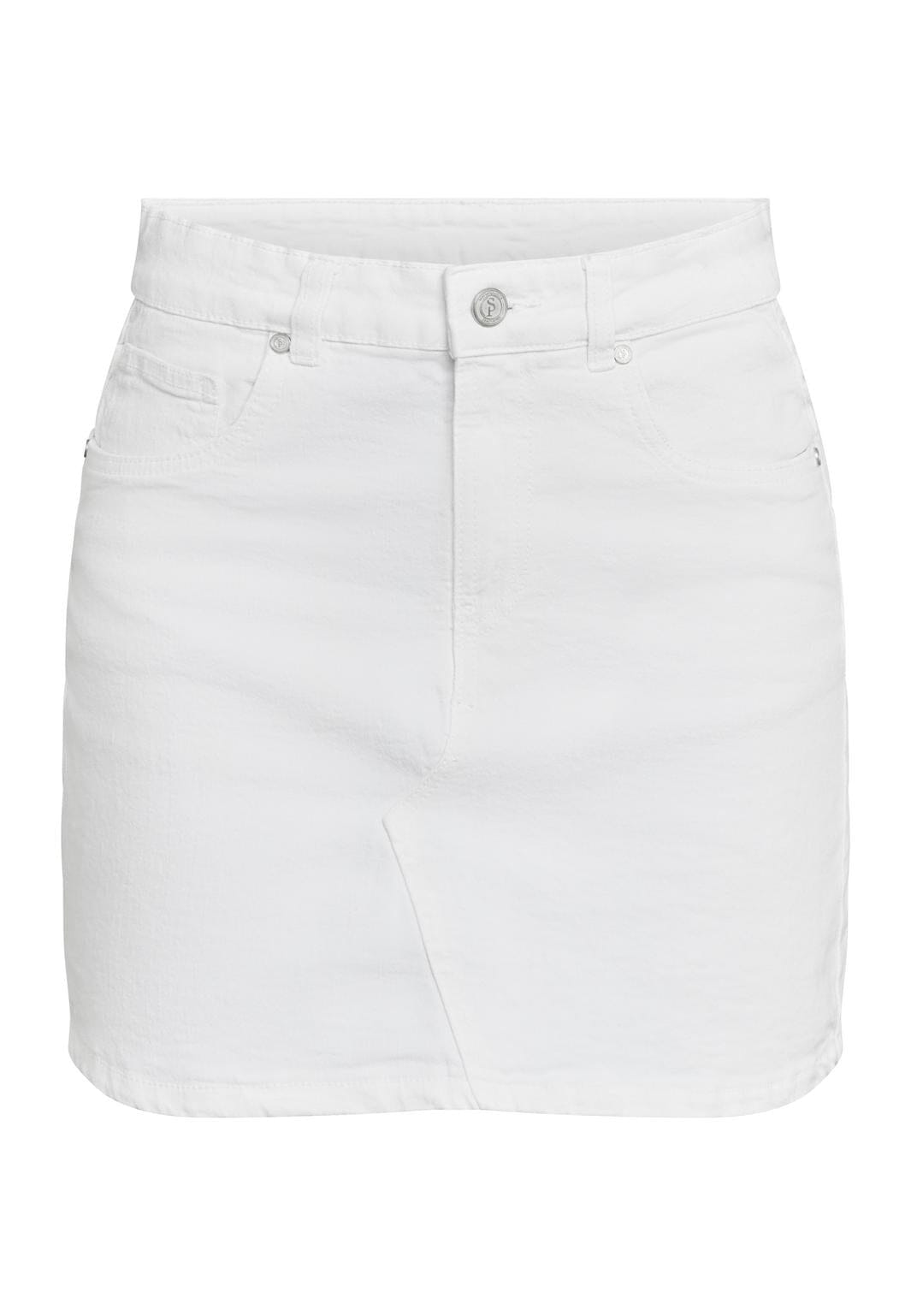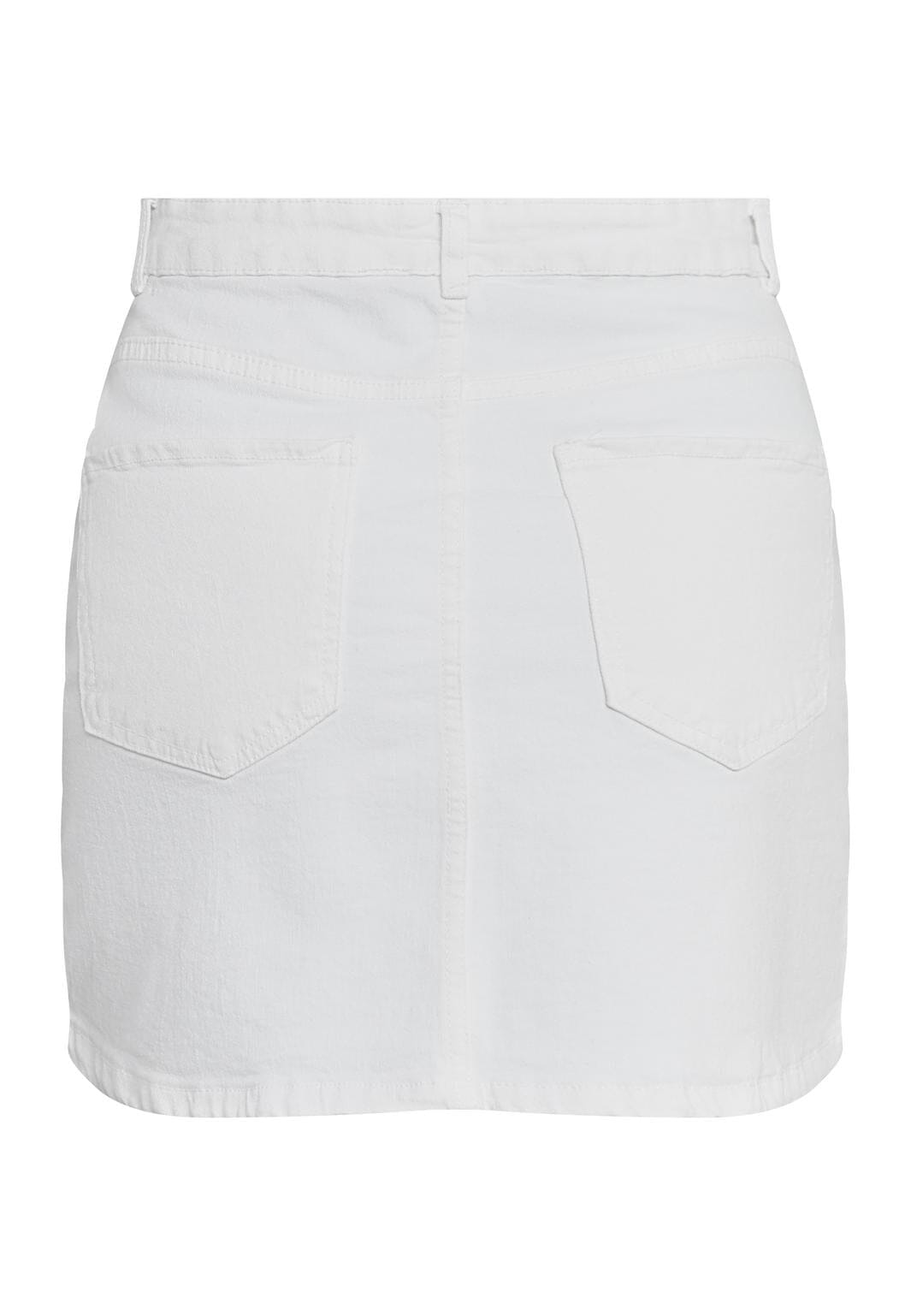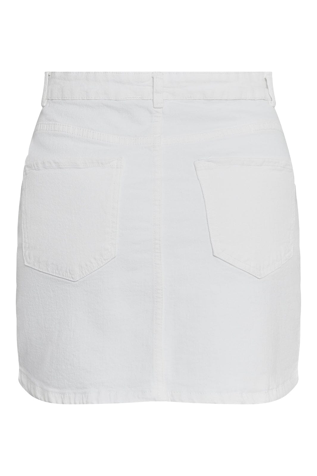 Biała spódnica dżinsowa od Sisters Point o krótkiej długości. Ma dopasowany krój i pas z zapięciem na guzik i zamek błyskawiczny. Spódnica wykonana jest z miękkiej mieszanki bawełny.