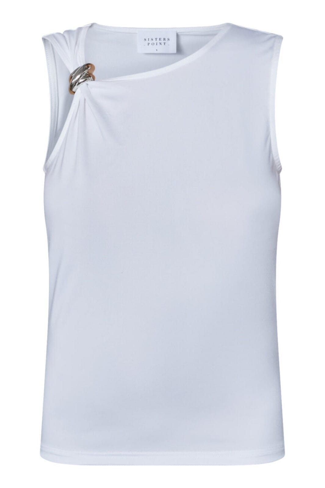 Kremowy top od Sisters Point z dekoltem off-shoulder i drapowaniem. Błyszczący pierścień przy ramieniu nadaje topowi wyjątkowy charakter. Top ma czysty i prosty design.