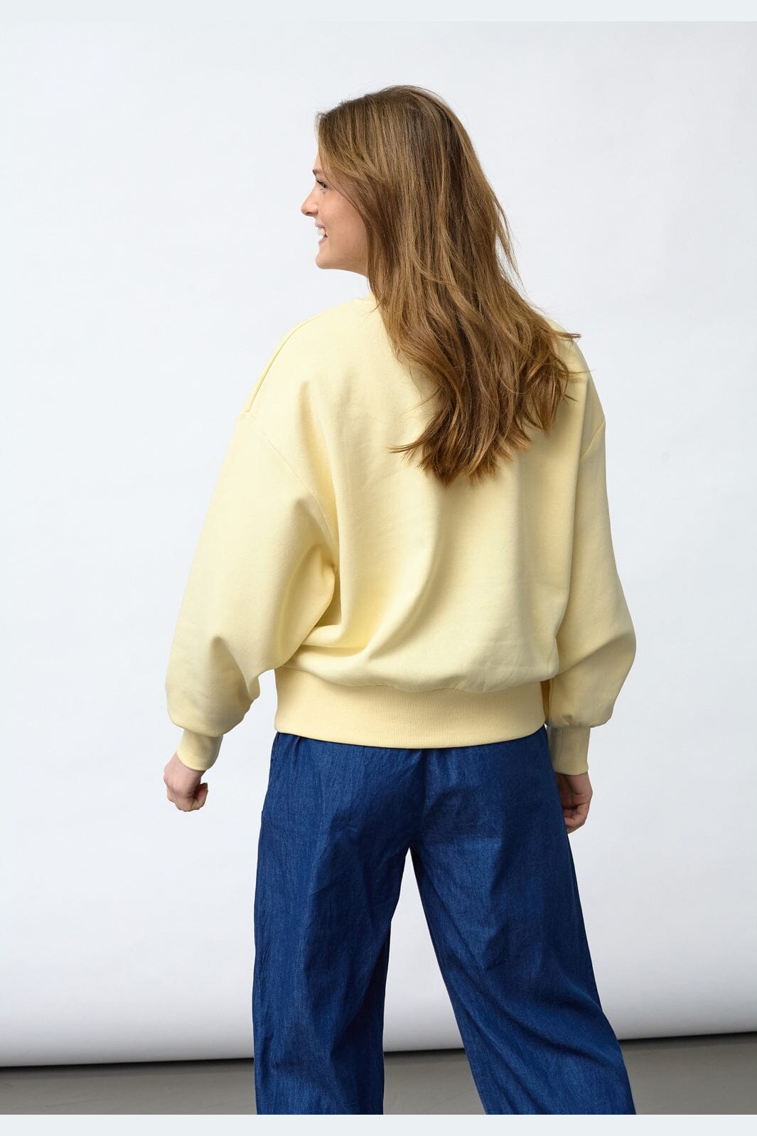 Jasnożółta bluza od Sisters Point, wykonana z bawełny i poliestru. Bluza ma haftowane detale na piersi oraz oversize’owy krój.