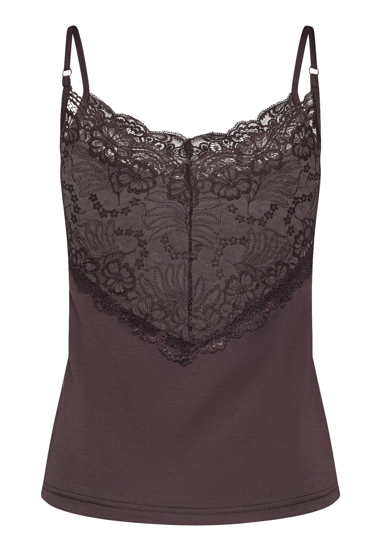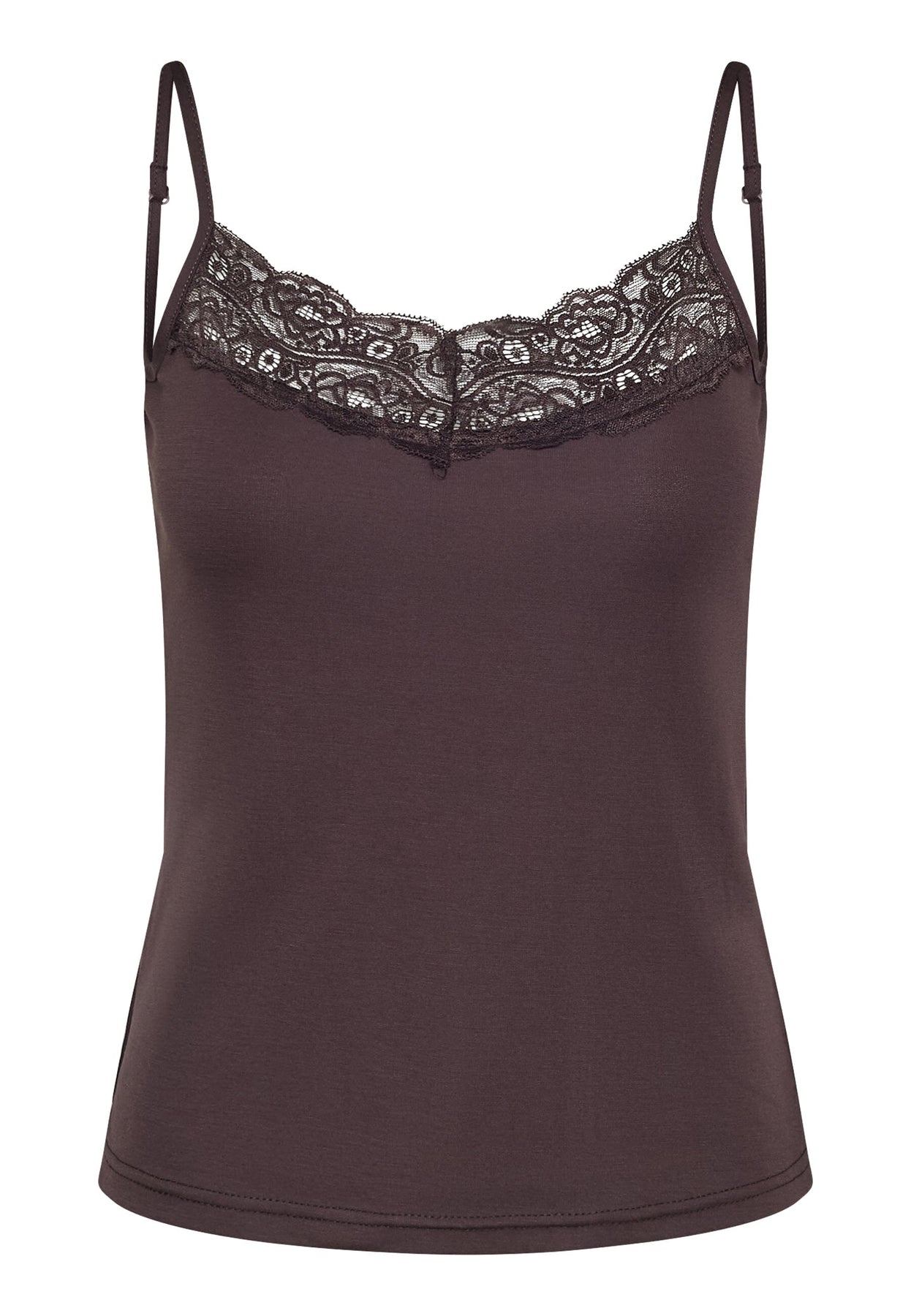 Top od Sisters Point w głębokim, czekoladowobrązowym odcieniu. Wykonany w 60% z wiskozy, 35% z poliestru i 5% z elastanu.