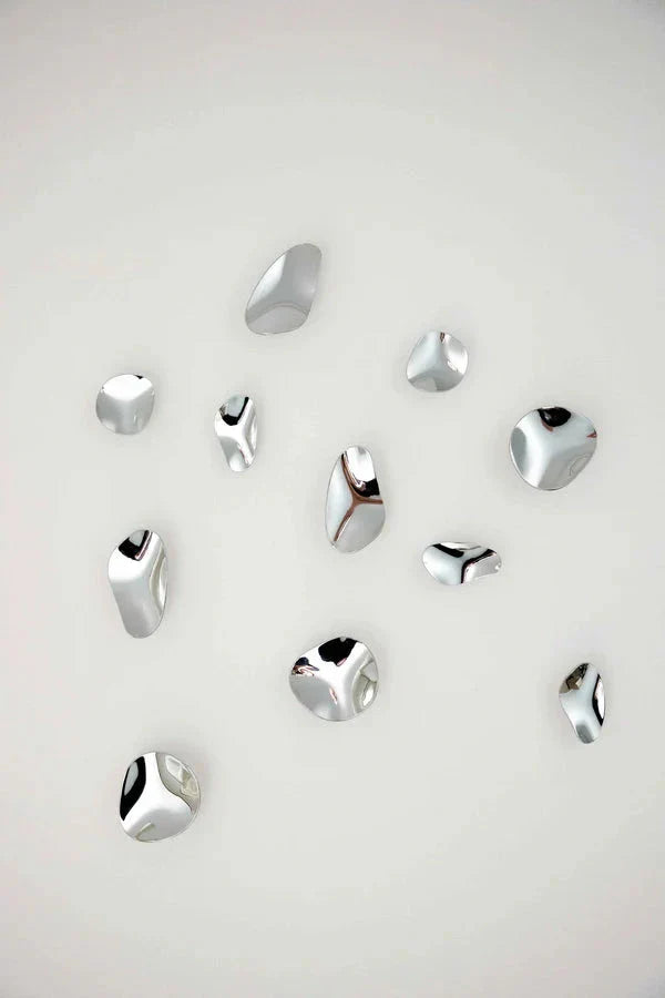 Podłużny wieszak marki Specktrum, wykonany z twardego metalu cynkowego z błyszczącym, chromowanym wykończeniem w kolorze srebrnym. Projekt ma organiczny, asymetryczny kształt.