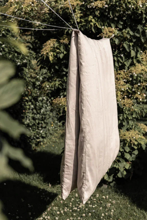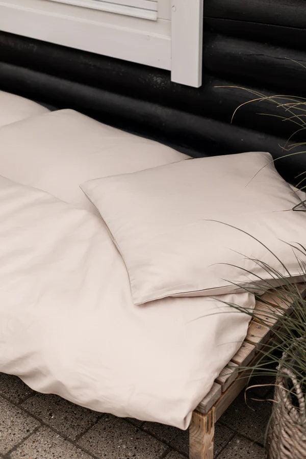 Pościel od Specktrum w odcieniu Power Powder. Zestaw składa się z poszewek na poduszki i poszewek na kołdry w jasnym, spokojnym kolorze. Materiał ma gładką i jednolitą powierzchnię.