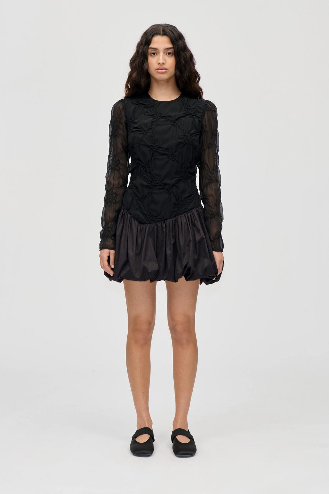 Stine Goya 2449 Smocked Cotton Mix, Balloon Long Sleeve Short Dresssg-ps26-d188-2449 Kolor: Smocked Flowers