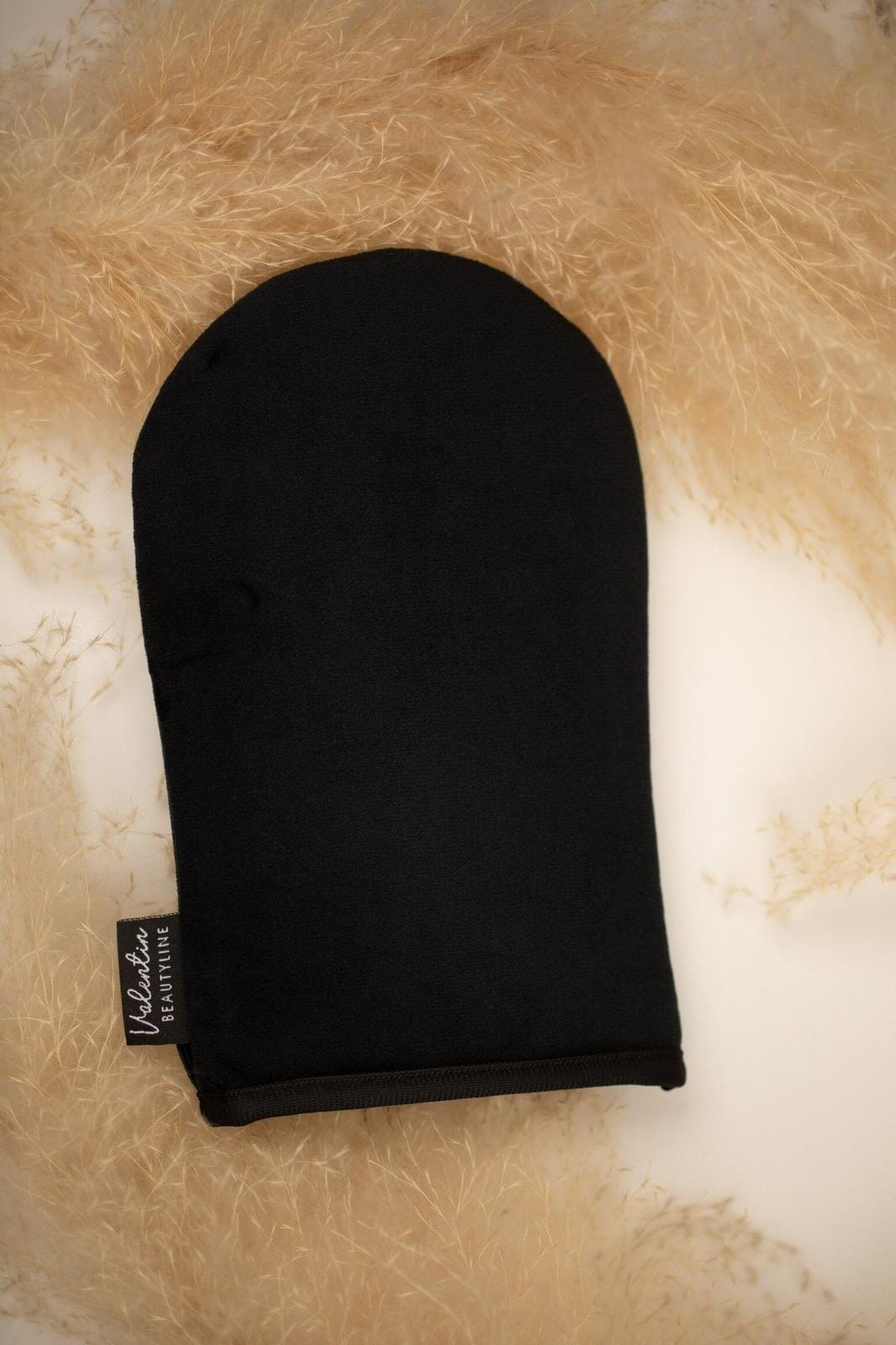 Czarna rękawica do aplikacji od Valentin Beautyline do samoopalacza i bronzera. Rękawica chroni dłonie przed zabarwieniem i pomaga równomiernie rozprowadzić produkt.