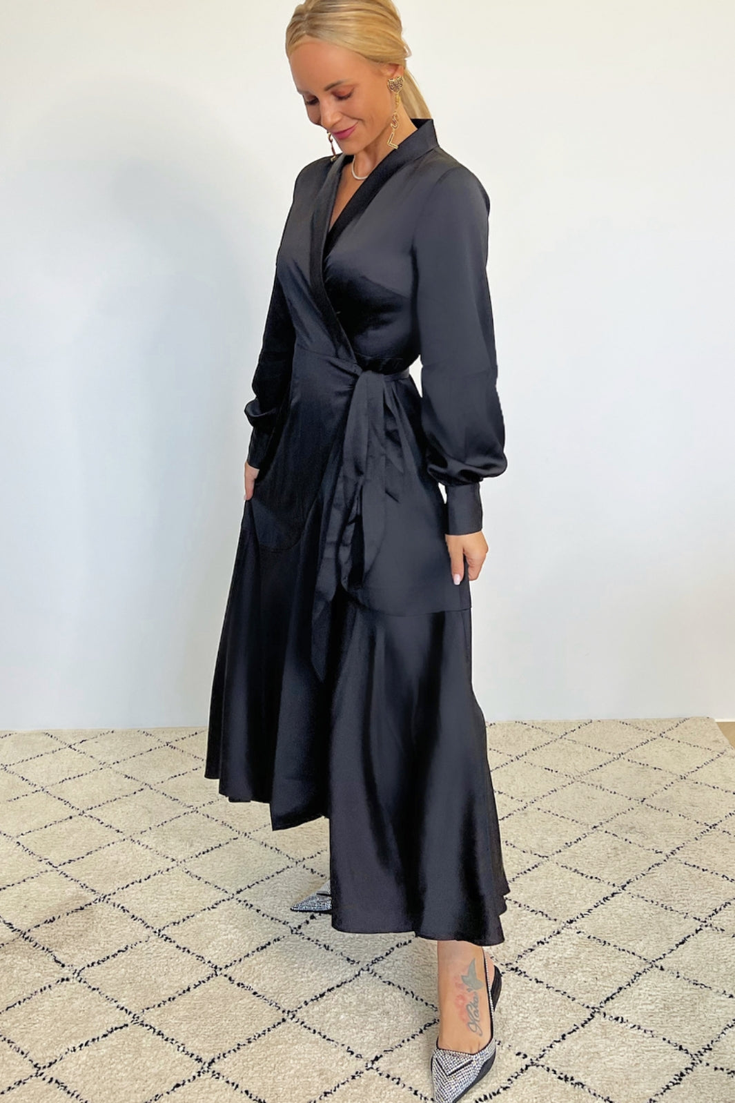 Valentin Studio Joy Wrap Dress Kolor: Black