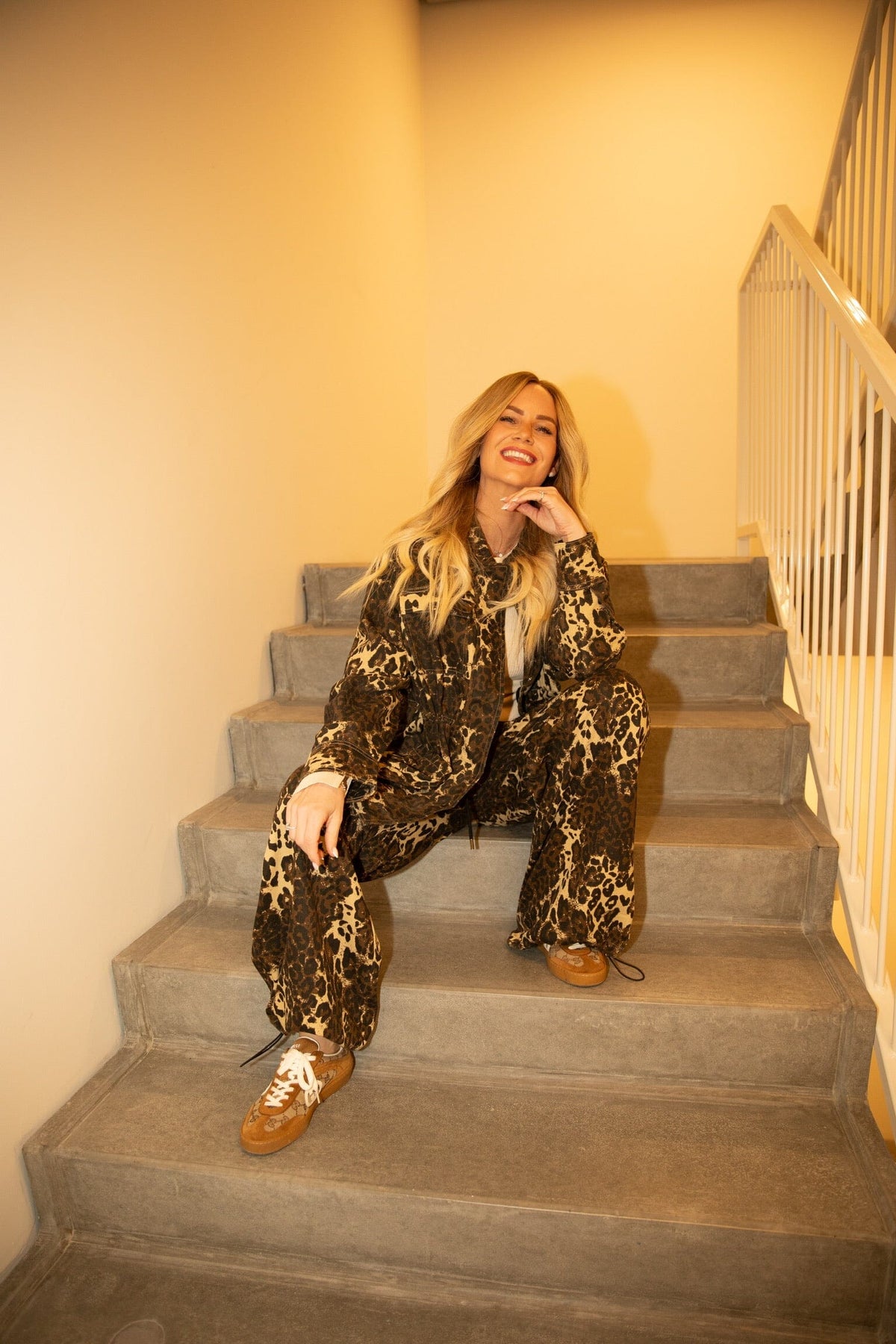 Luźna kurtka od Valentin Studio z nadrukiem w panterkę w brązowych i beżowych odcieniach. Kurtka ma długie rękawy i swobodny krój.