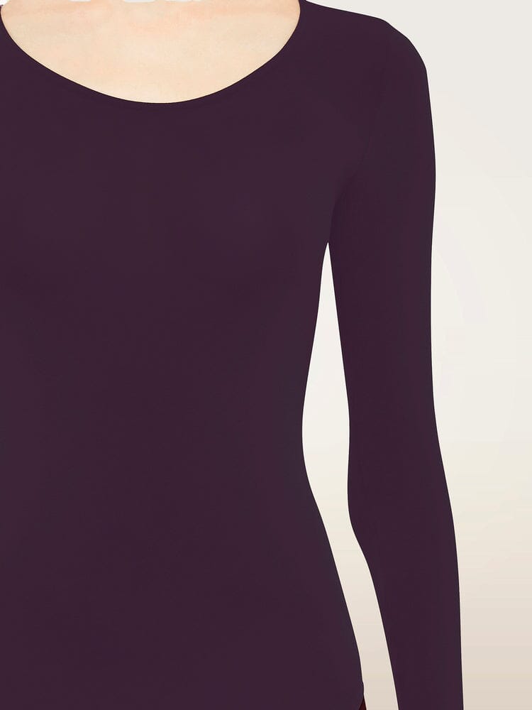 Głęboko fioletowe body marki Wolford z długimi rękawami i okrągłym dekoltem. Body ma dopasowany krój i nadaje się zarówno na formalne, jak i swobodne okazje.