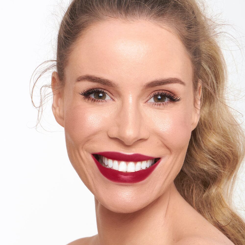 Wodoodporna formuła zapewnia, że kolor utrzymuje się na ustach, nie przenosząc się na szklanki ani ubrania.