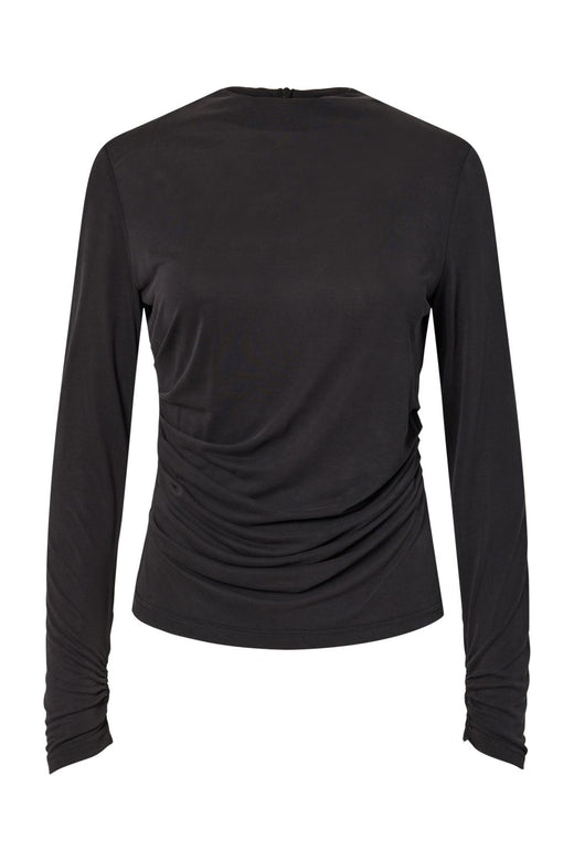 Czarna bluzka z długim rękawem od Y. A.S z okrągłym dekoltem. Bluzka ma detale marszczenia z przodu oraz regular fit, co sprawia, że jest wygodna w noszeniu.