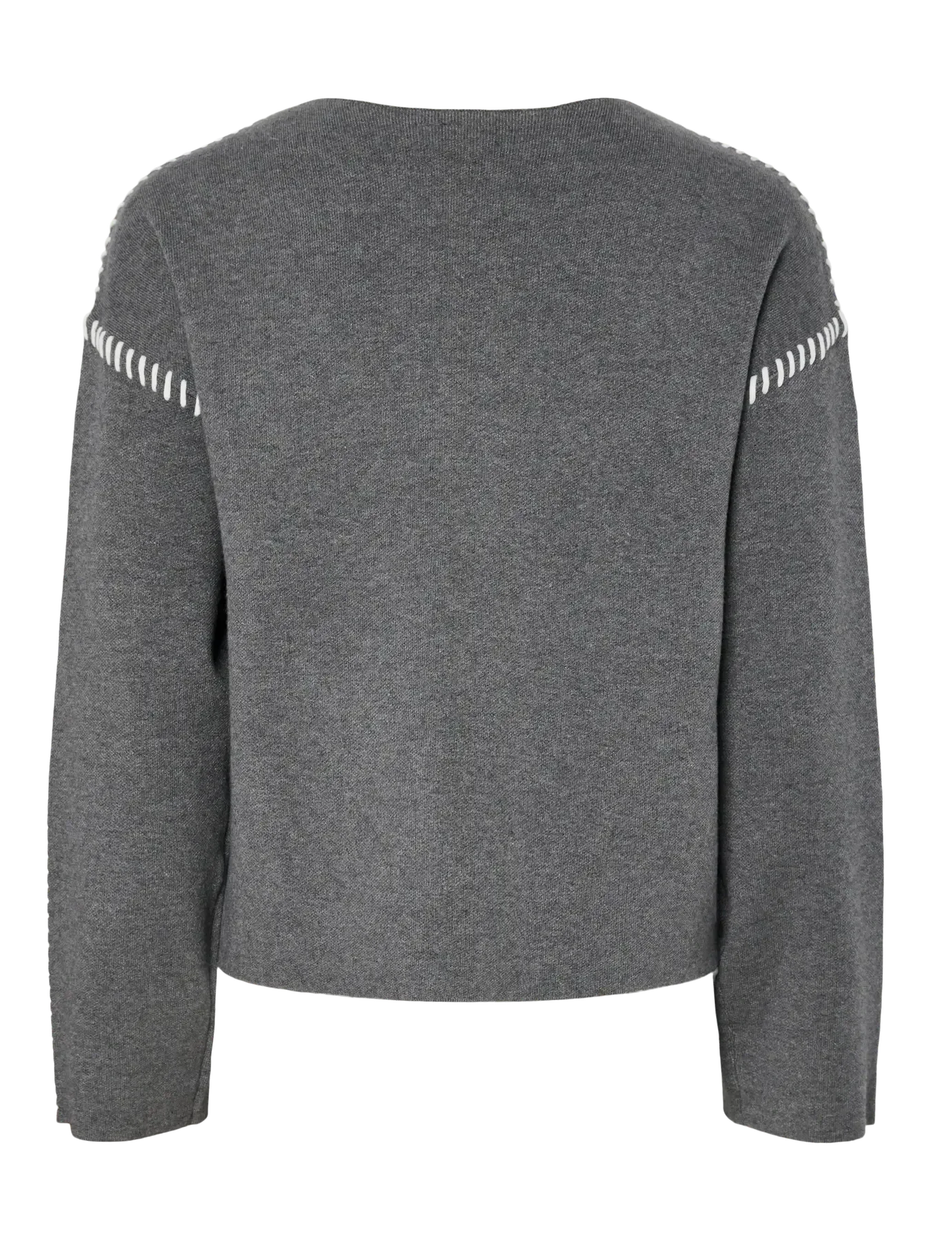 Y.A.S Yasstitcha Ls Knit Pullover Kolor: 4841745 Medium Grey Melange Birch Stitches